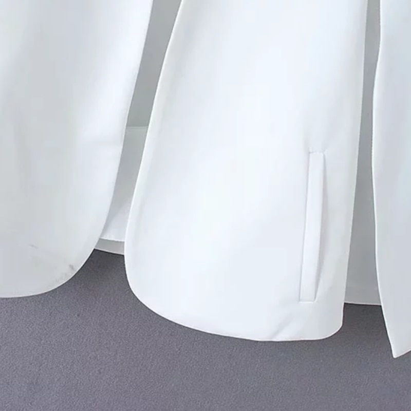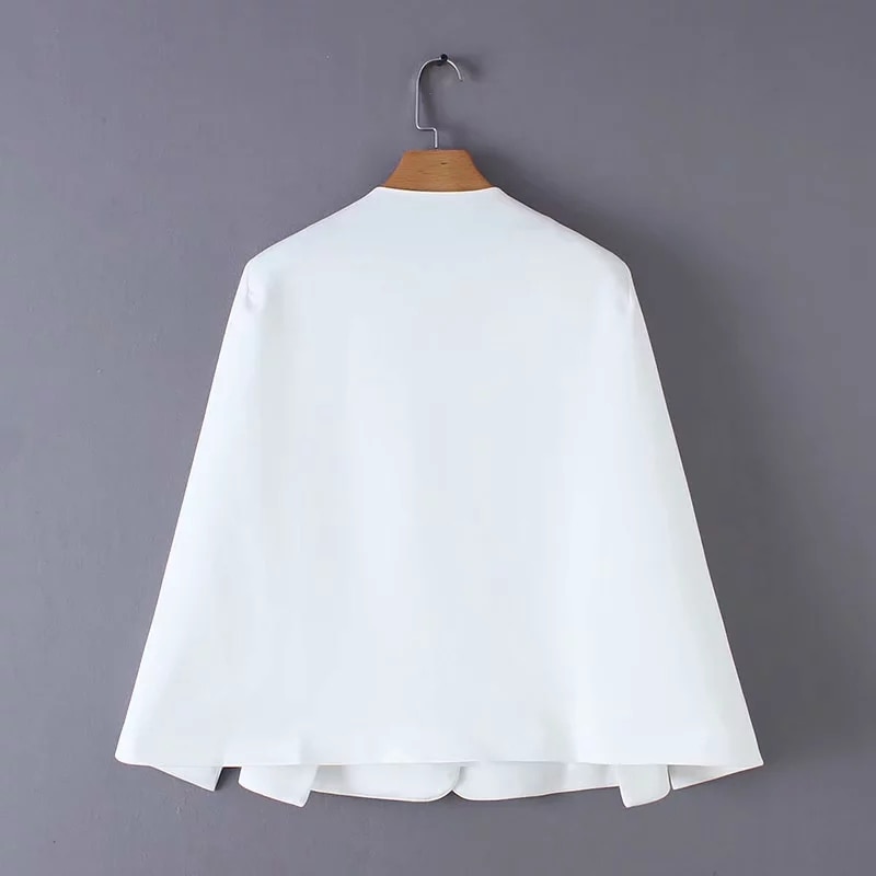 - Avantage : Cape Blanche Femme fentes, poches, col V plat