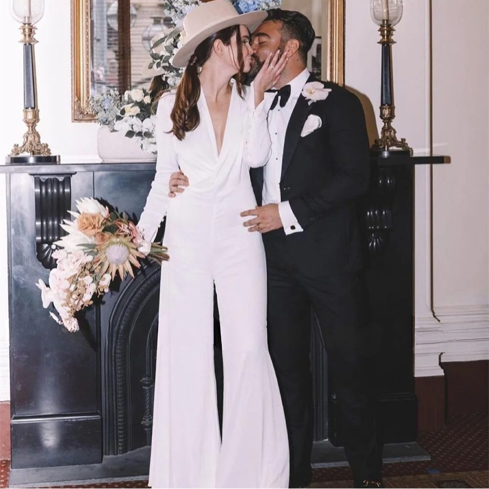 - Avantage : Combinaison Mariage Civil manches longues, col V