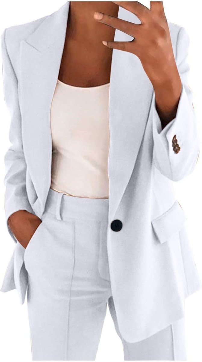 Découvrez cette Tailleur Femme 2 Pièces Elegant Couleur Unie Slim Fit Blazer Veste Formel Bureau Travail Pantalon Costumes Revers Manteau Ensemble Blazer Couleur Unie Tailleur Femme Pantalon 2 Pièces Chic et Elegant au prix imbattable de :