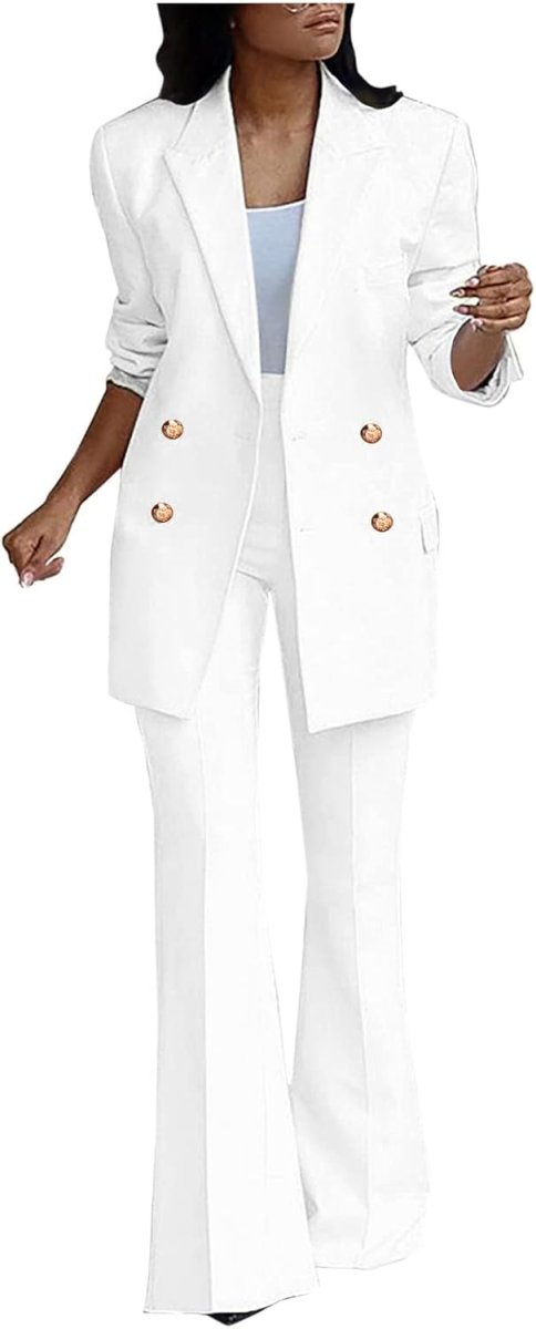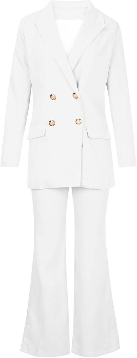 Découvrez cette Femmes Costume Ensemble Plain Pantalon Costume À Manches Longues Entaillé Double Boutonnage Blazer Veste + Bootcut Costume Pantalon Solide Travail Bureau d’affaires Casual Smart Costume Ensembles au prix imbattable de :