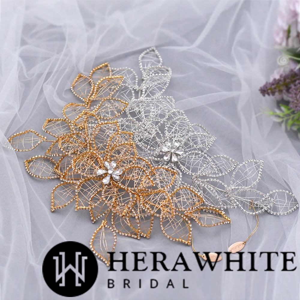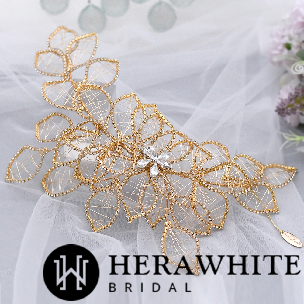 - Avantage : Grande Coiffe De Mariée strass, grandes feuilles, petites fleurs