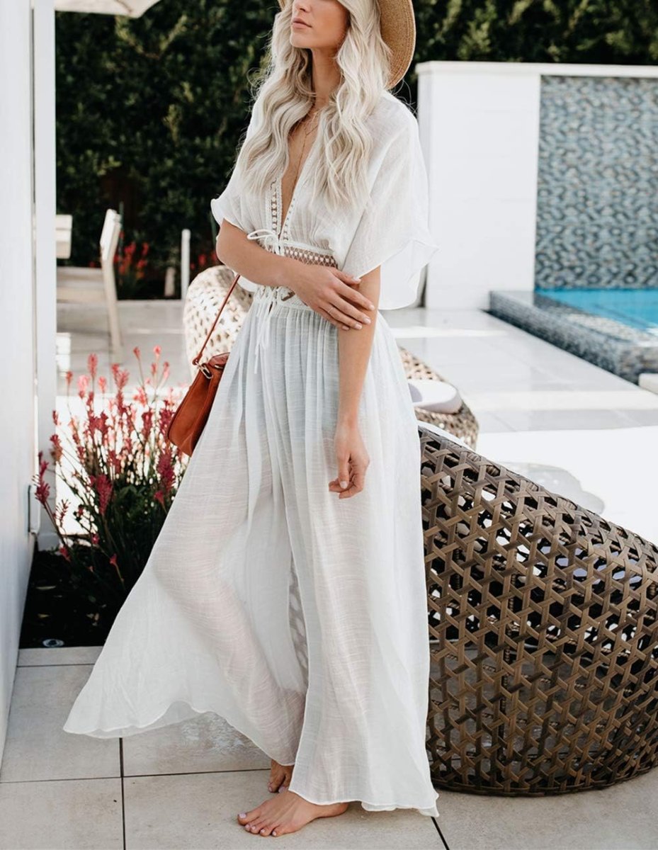 Titre : LikeJump Femme Robe de Nuit Kimono Maxi Cache-Maillot Robe de Plage Bikini d’été : La Parfaite Combinaison pour votre Sécurité et votre Style