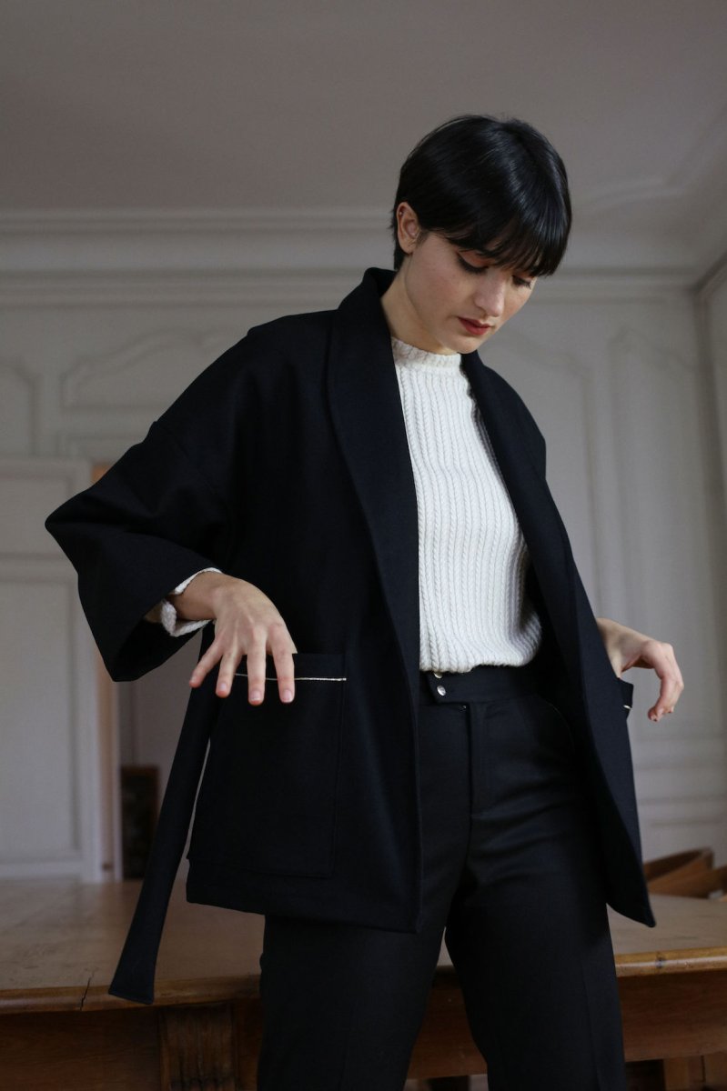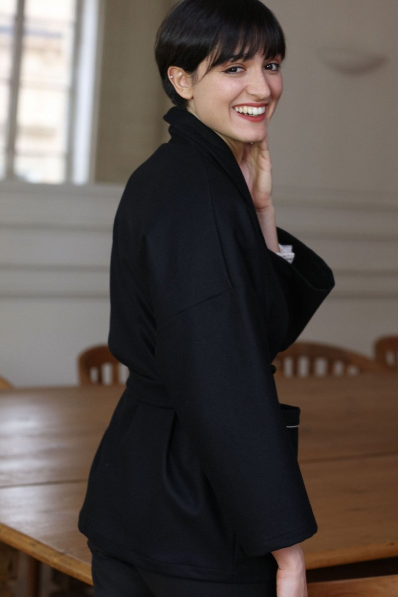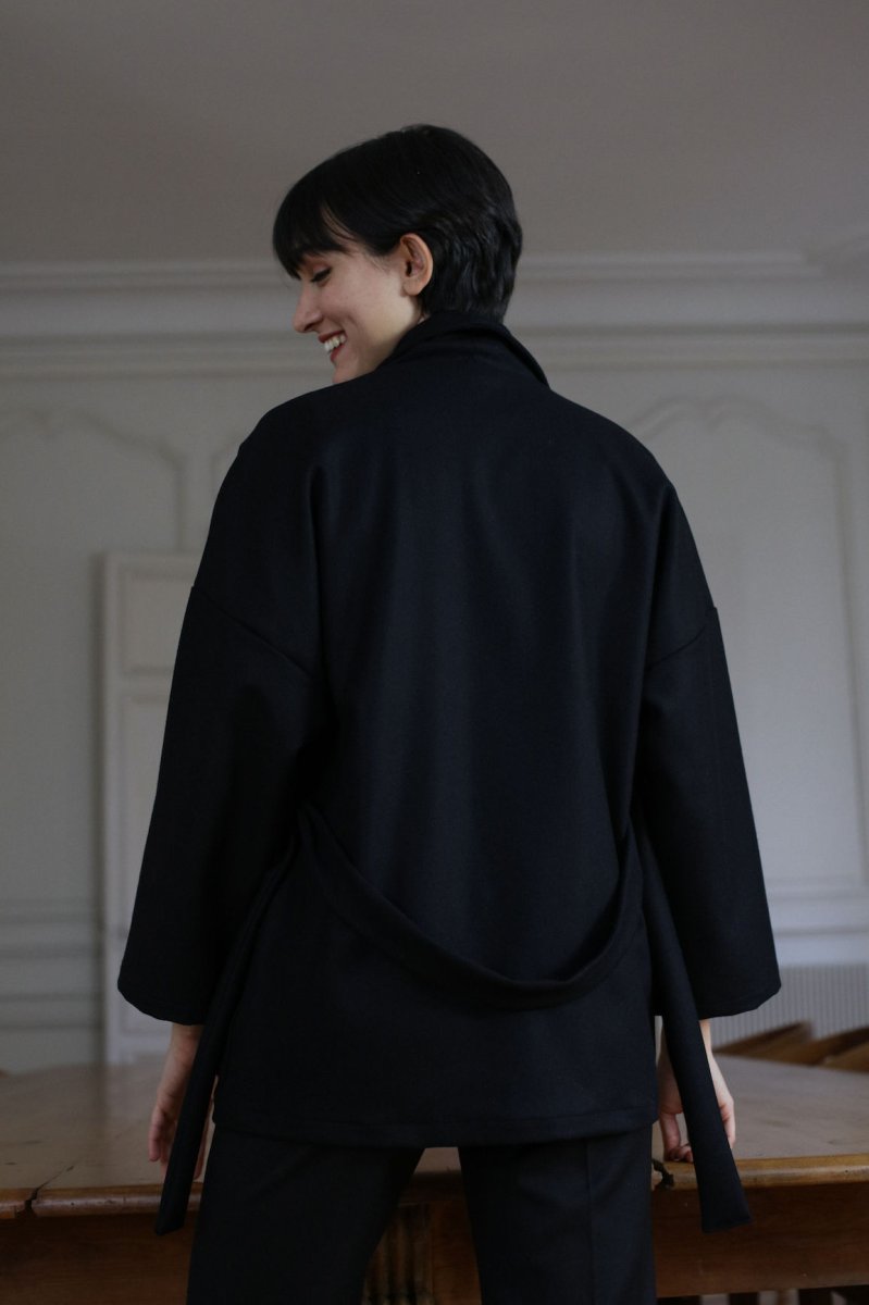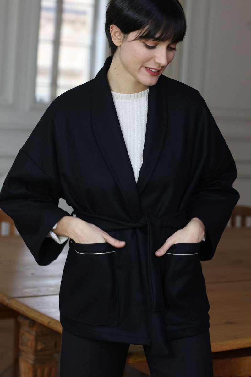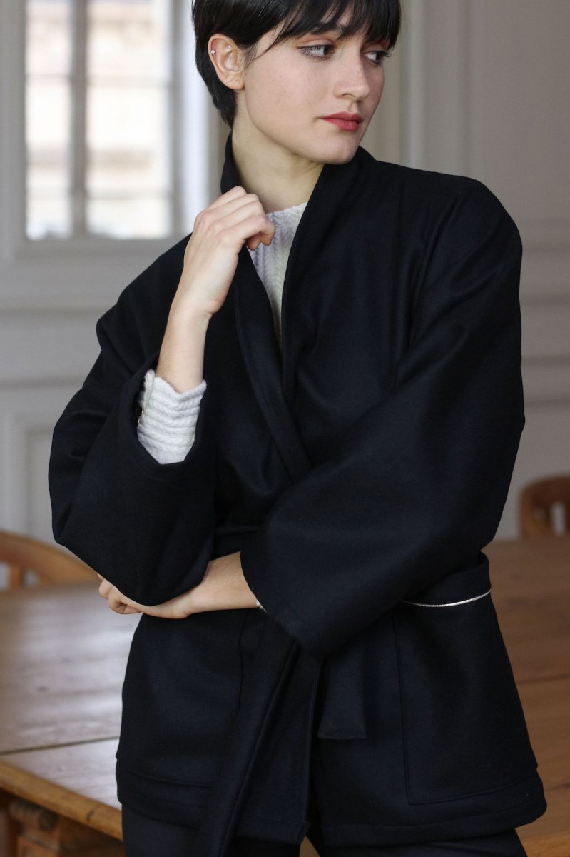 L’hiver s’installe avec une température qui baisse de plus en plus, Tedith vous propose un nouveau modèle MATTIS. Une belle pièce bien chaude composé 70% de laine et 30% de cachemire, chic et intemporel, voila de quoi réchauffer vos tenues. Ce qu’on adore de ce manteau c’est de pouvoir glisser ses pulls en grosses mailles sous sa forme oversize ! • Forme Veste Oversize • Manches larges • 2 grandes poches devant • Ceinture en lainage noir Ce produit à été fabriqué avec amour dans mon atelier Bordelais Envoi sous 5 à 10 jours ouvrés
