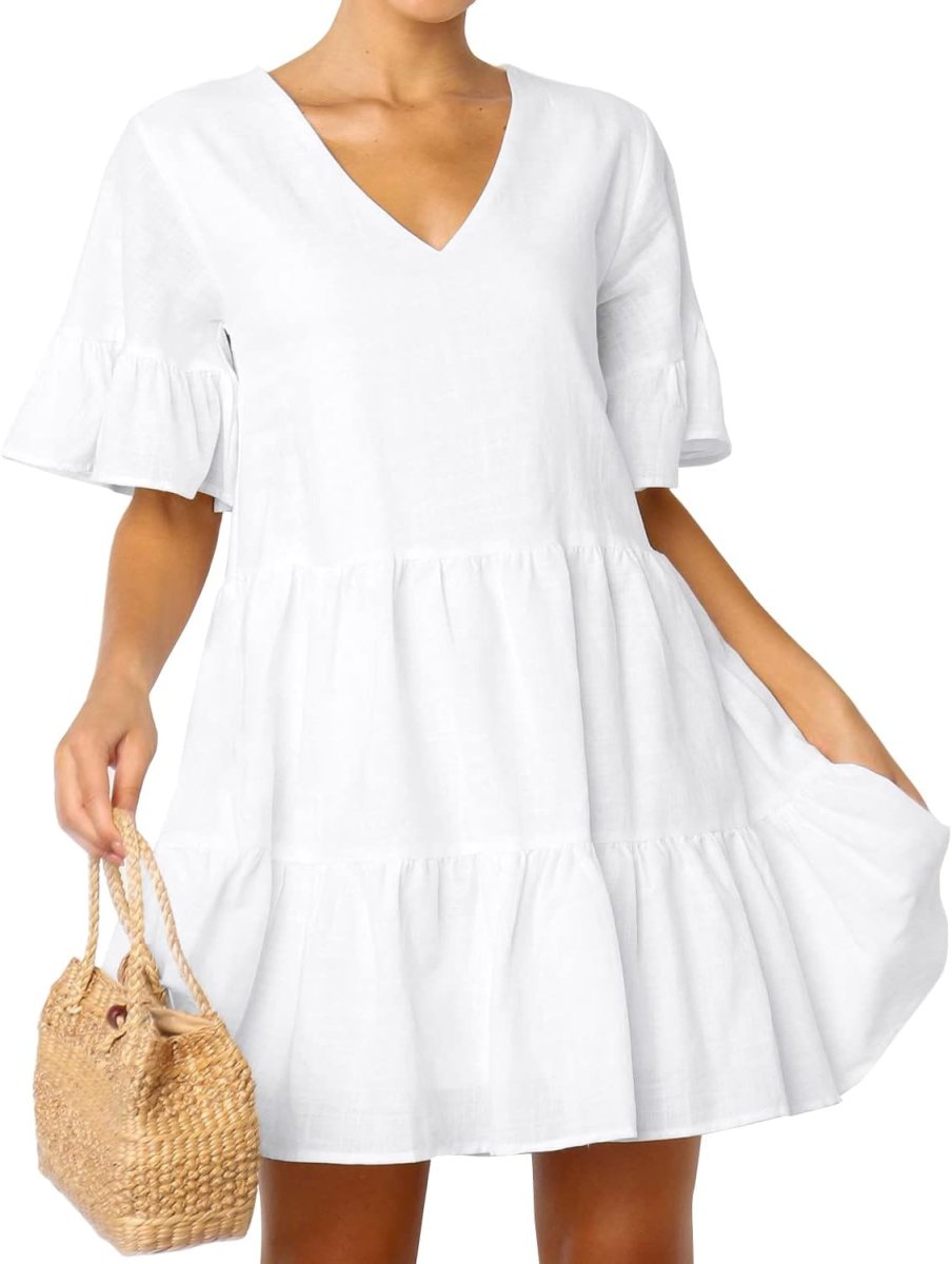 Mots-clés : robe blanche bohemienne courte, tendance mode, style libertaire, robe blanche exclusive, garde-robe chic.