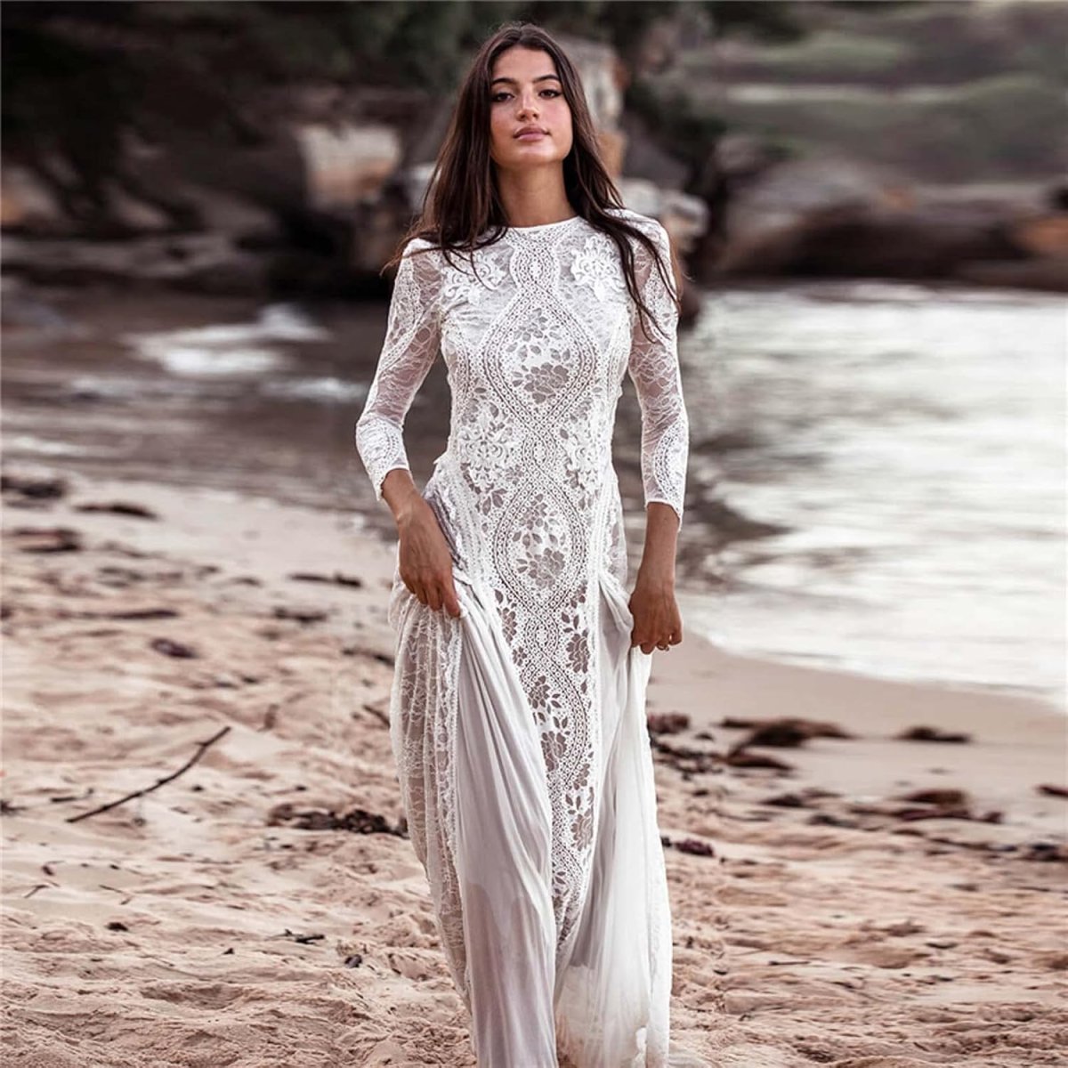 Les robes blanches longues sont classiques et élégantes. Elles sont généralement faites de soie, de satin ou de dentelle. Leur simplicité radicale leur permet de s’harmoniser avec n’importe quel décor, ce qui leur permet de se fondre dans l’atmosphère de l’événement, et en même temps de répondre aux rêves de l’épouse.