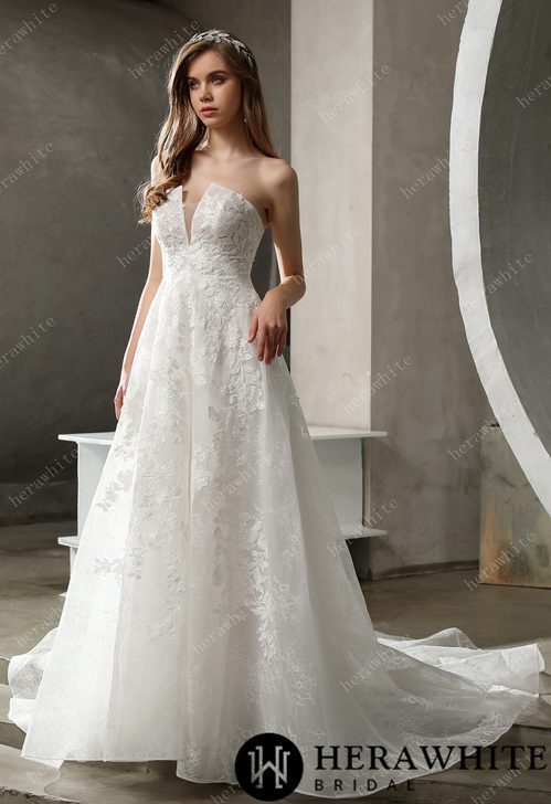 Cette très belle Robe De Mariée A Fleurs est la robe idéale pour votre cérémonie champêtre. Sa dentelle florale et ses sequins apporteront du charme et du raffinement. Ses manches amovibles pourront être portées ou retirées à votre guise. Son dos semi nu et son décolleté V seront sensuels.