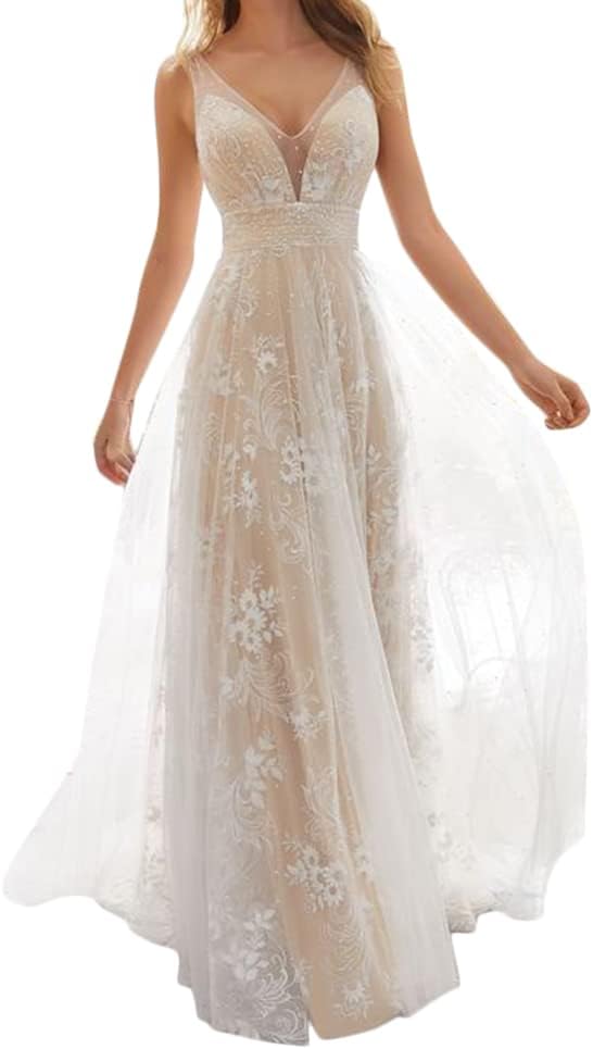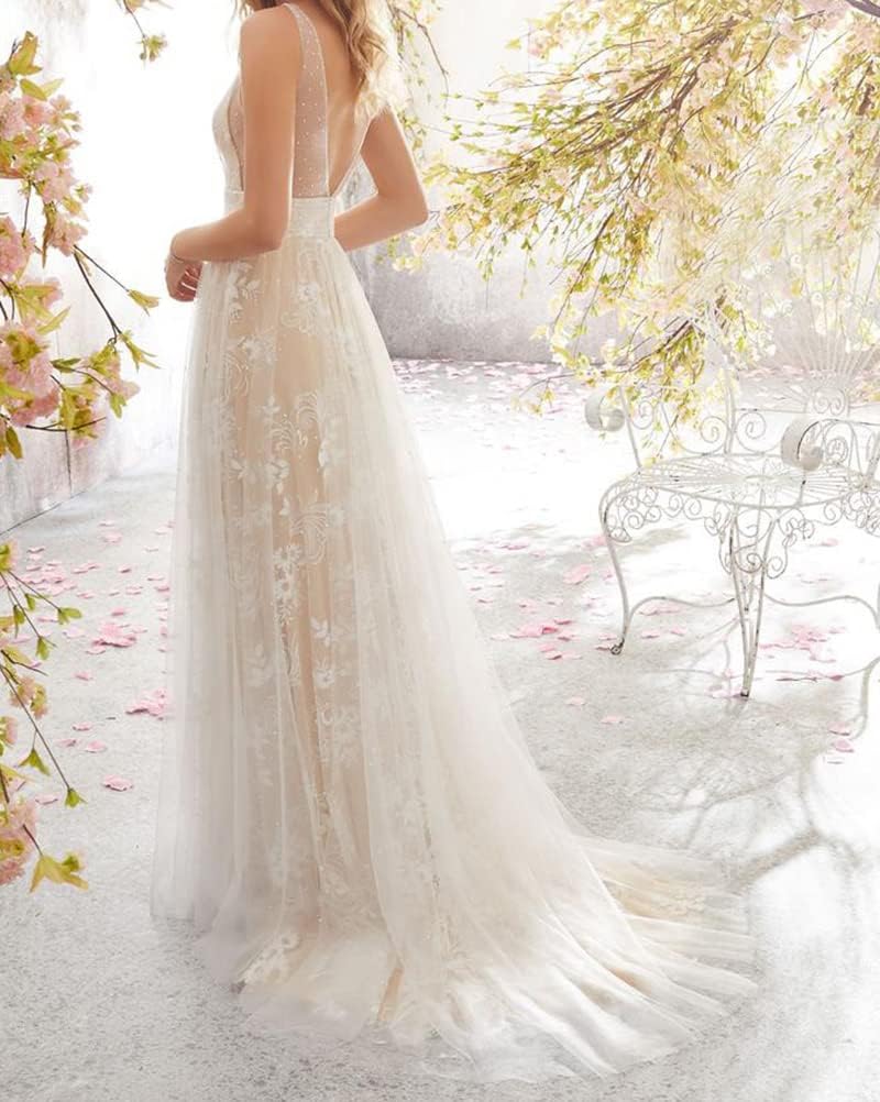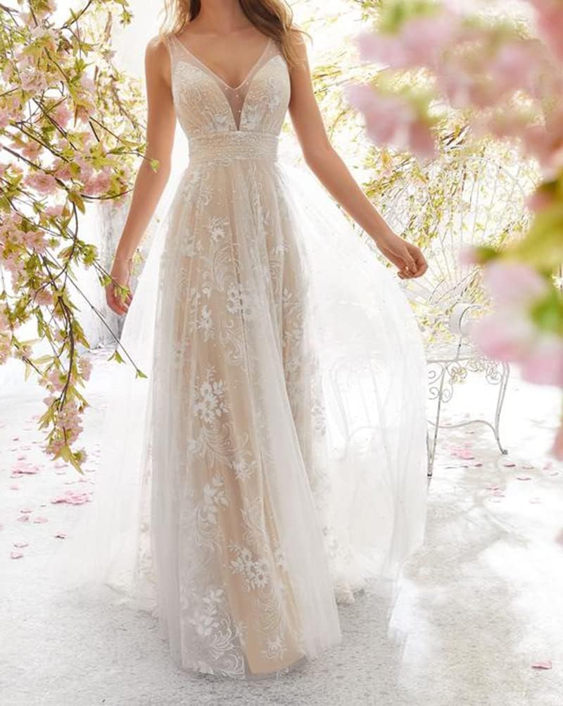 Robe de mariée A à bretelles spaghetti champagne romantique