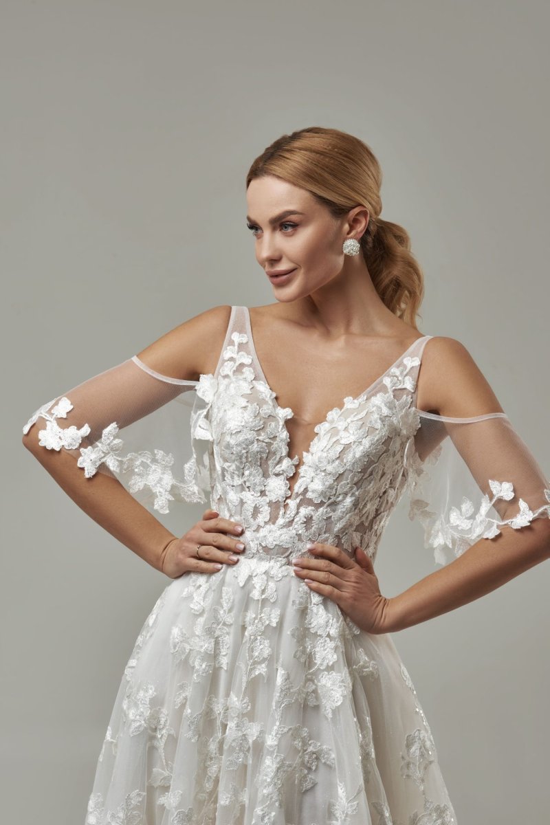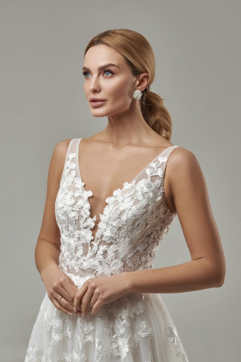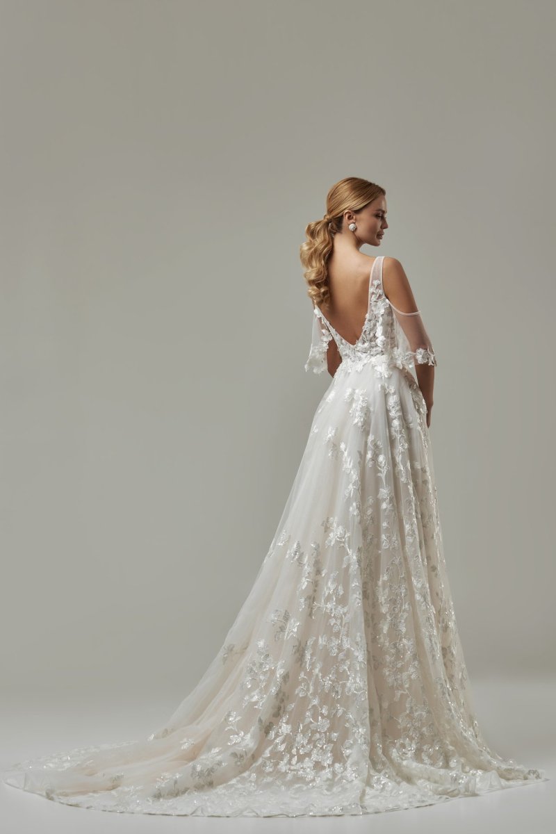 Chaque détail de cette robe de mariée est conçu avec soin et attention pour créer un look qui est à la fois audacieux et subtil. De l’encolure délicate à la coupe flatteuse, en passant par le dos nu qui laisse entrevoir vos courbes, chaque élément de cette robe a été pensé pour vous faire sentir belle et confiante. Les détails en dentelle donnent une touche de sophistication, tandis que la coupe fluide apporte une allure bohème.