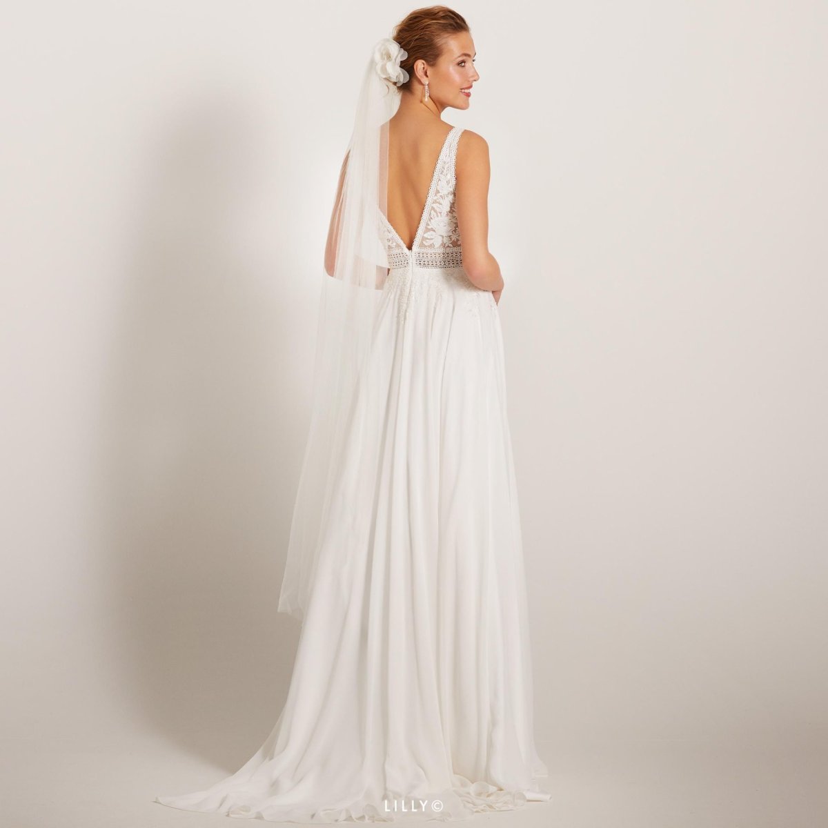 Ne manquez pas cette occasion d’obtenir la Robe De Mariée Dos Nu Plongeant Blanche de vos rêves. Commandez dès aujourd’hui et faites une entrée remarquable le jour de votre mariage.