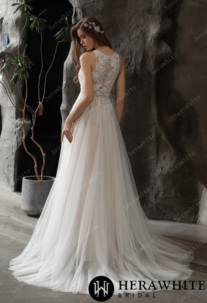 - Avantage : Robe De Mariée Hippie Chic bretelles, col arrondi, broderies florales, sequins, traîne