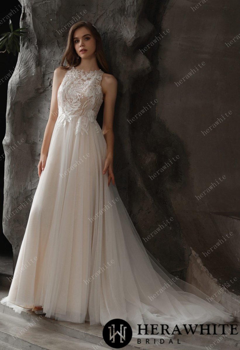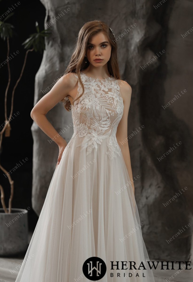 Cette jolie Robe De Mariée Hippie Chic saura se fusionner avec élégance à votre thème lors de votre mariage. Votre futur mari sera sous le charme de votre tenue plein de finesse et de raffinement. Sa dentelle florale brodée sera chic. Sa jupe légère et son haut seront confortable à porter.