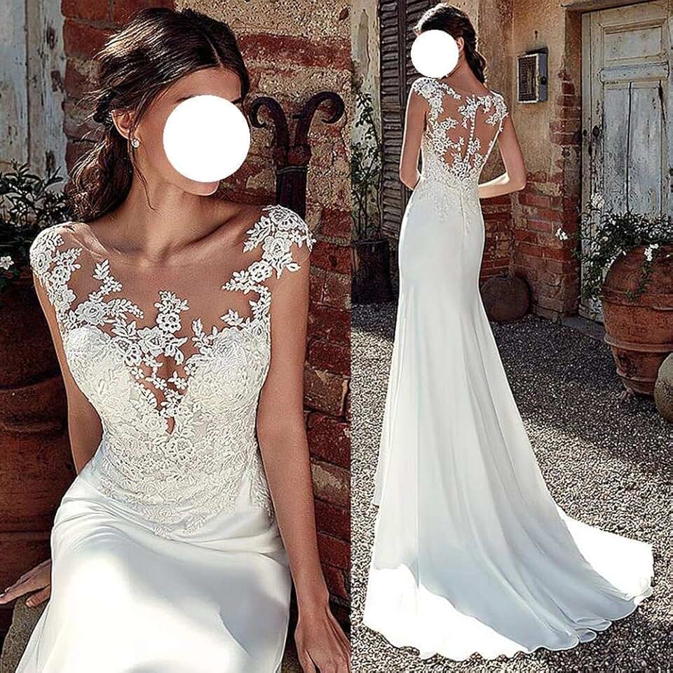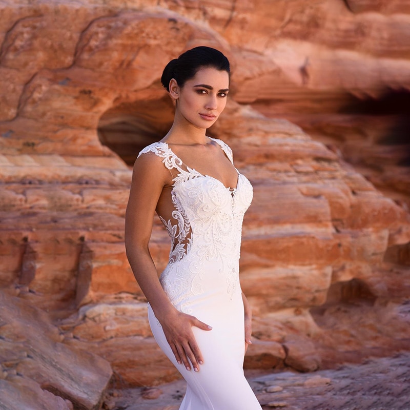 - Avantage : Robe De Mariée Sirène Dos Illusion Blanche longue traîne, bretelles, broderies, perles