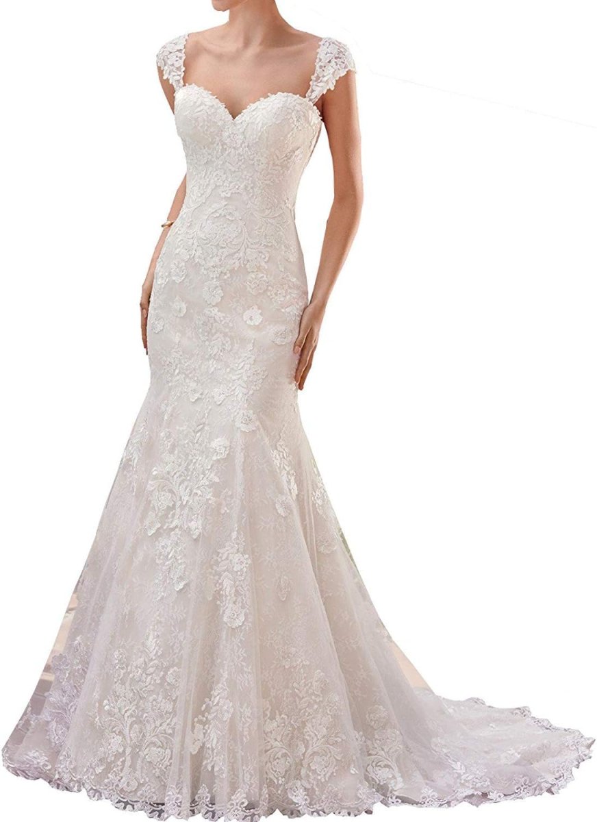 Découvrez cette Robe de mariée sirène volantée en tulle et dentelle perlée au prix imbattable de :