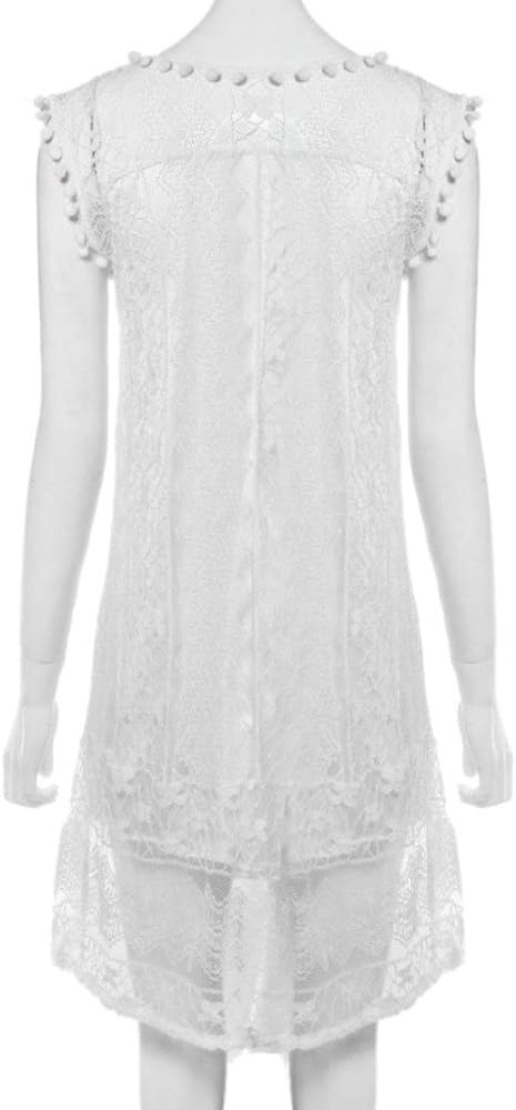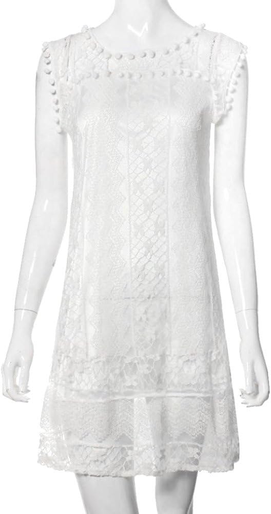 OverDose Soldes : La Robe Été Femme en Dentelle Blanche Sexy Grande Taille sans Manches