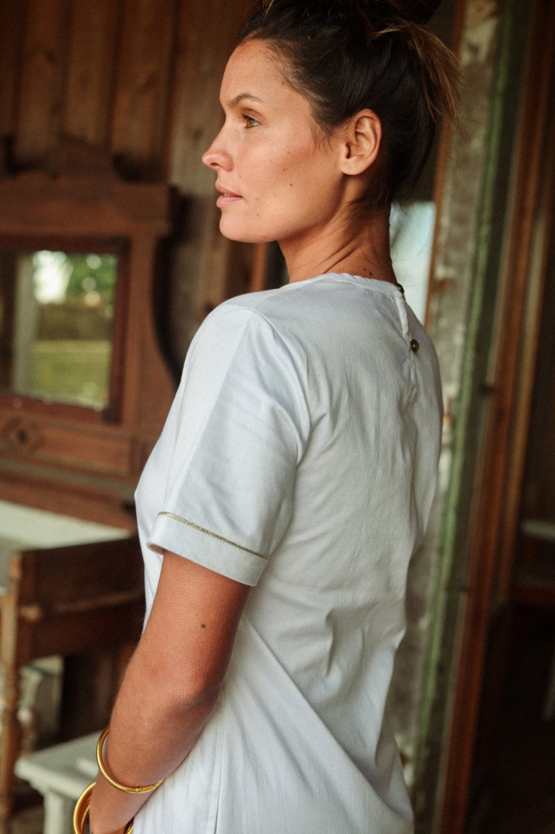 Notre mannequin mesure 1,71 m et porte la taille 2 (38) M