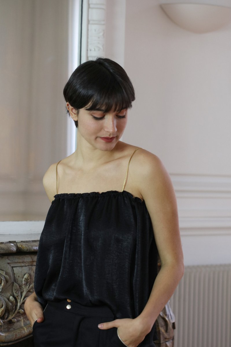Voici le petit top qu’on devrait toutes avoir dans notre dressing. C’est l »indispensable top Isla avec ses fines bretelles délicates, son satin fluide qui apporte de la tendresse et de la douceur. Ses jolies finitions au dos le rendent complètement unique, la féminité à l’état pure, à obtenir absolument ! • Top débardeur fluide • Fines bretelles doré • Débardeur ample, fluide ouvert au dos • 2 Boutons dorés   Ce produit à été fabriqué avec amour dans mon atelier Bordelais Envoi sous 5 à 10 jours ouvrés