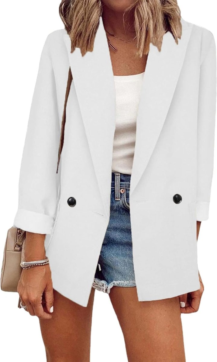 Titre principal : OMZIN Femmes Blazer Business Cardigan Manches Longues Veste Décontractée Coupe Courte Blazer De Bureau